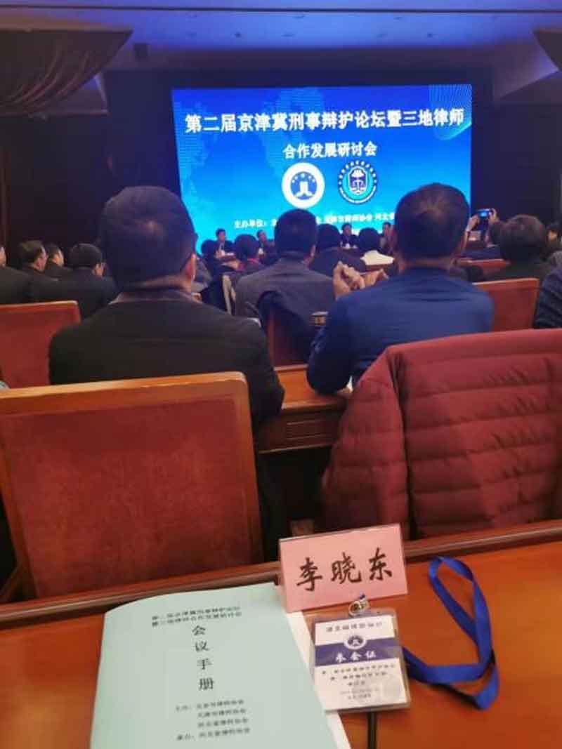 2019年12月14、15日,为贯彻落实京津冀协同发展战略,推动京津冀律师行业的紧密合作,由北京、天津、河北三地律师协会主办,河北省律师协会承办的第二届京津冀刑事辩护论坛暨三地律师合作发展研讨会在石家庄召开。李晓东主任受邀参加本次研讨会。