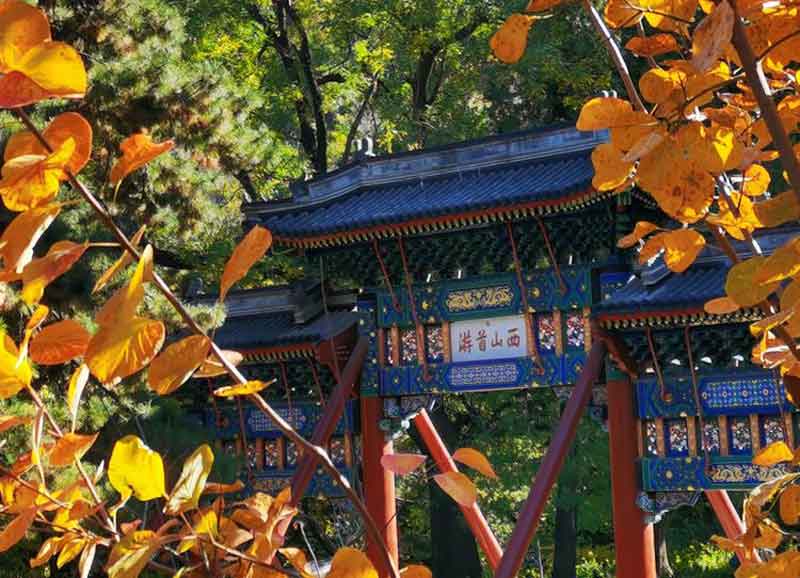 香山寺前街有一座牌坊,东面题:西山首游,西面题:京西之冠,印玺为:乾隆御笔。