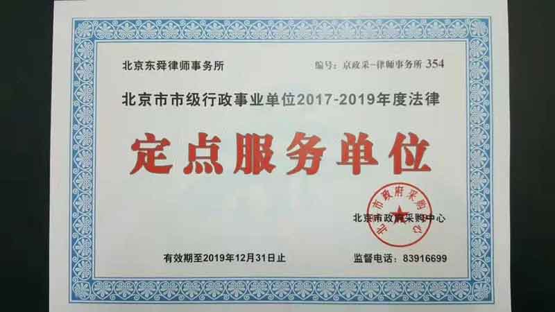 东舜律师事务所中标北京市事业单位定点法律服务单位