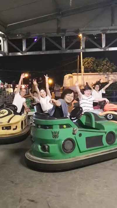 在六一儿童节这个特殊的日子里,我们坐上了卡丁车,大家碰碰撞撞,开心得像个孩子一般,好像把所有的烦恼都“撞掉”了。